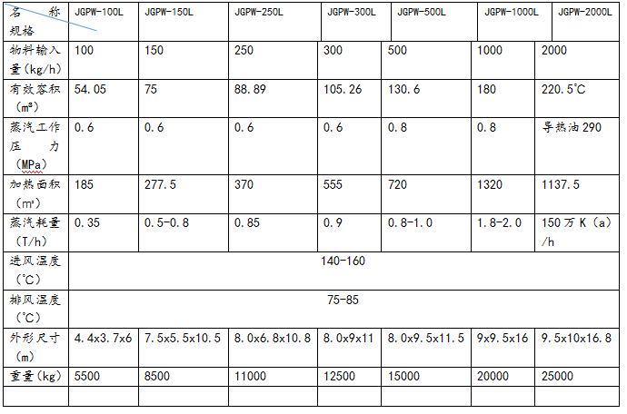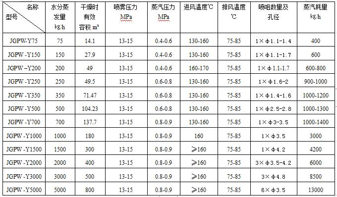 JGPW-L型離心噴霧干燥機組主要技術(shù)參數(shù)